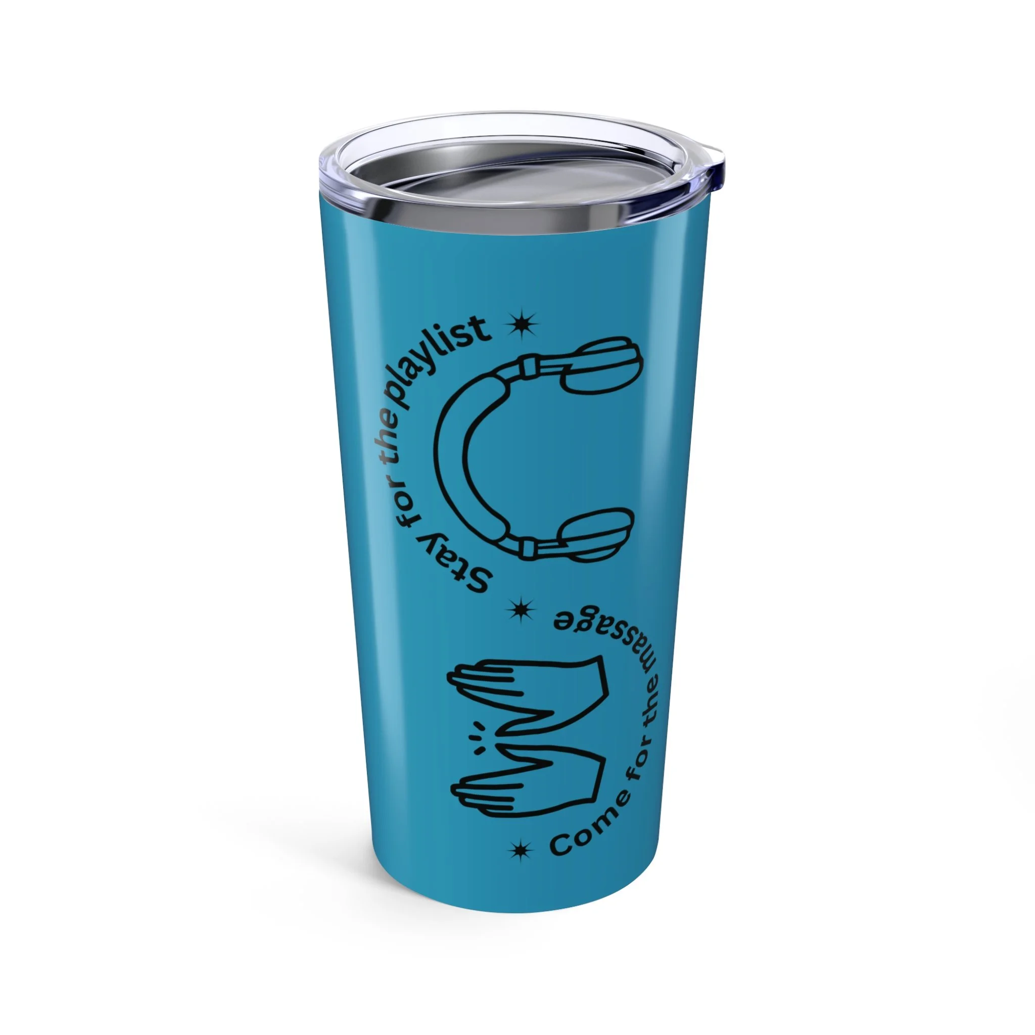The “Come for the Massage, Stay for the Playlist” 20oz Tumbler is a must-have for self-care pros who know that ambiance is half the service.