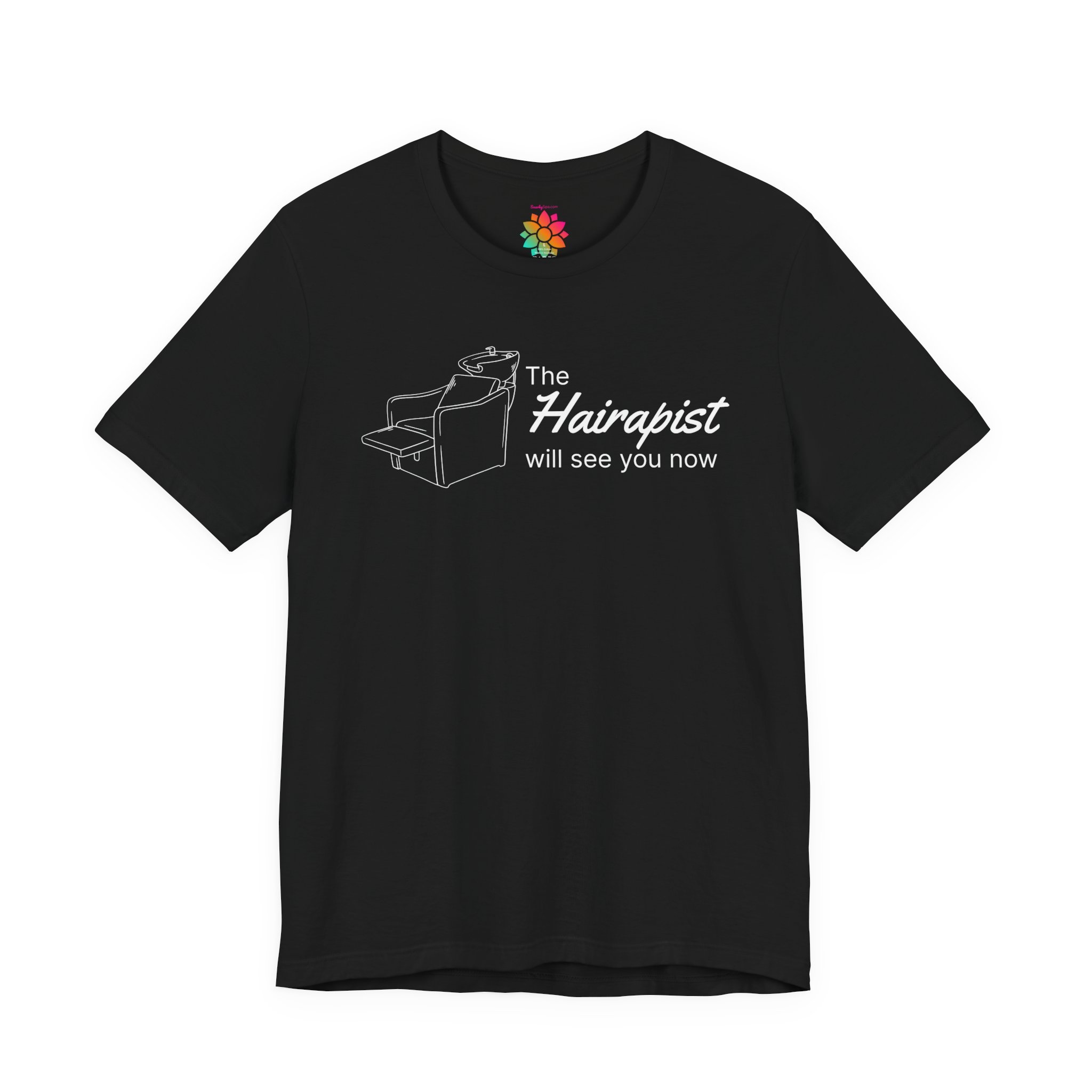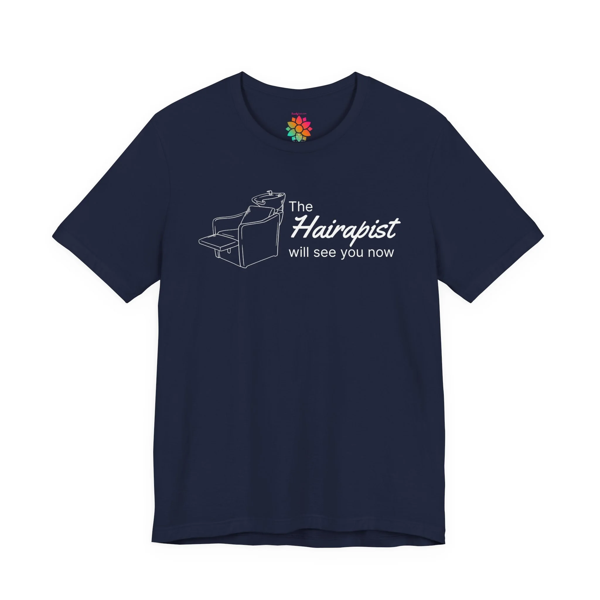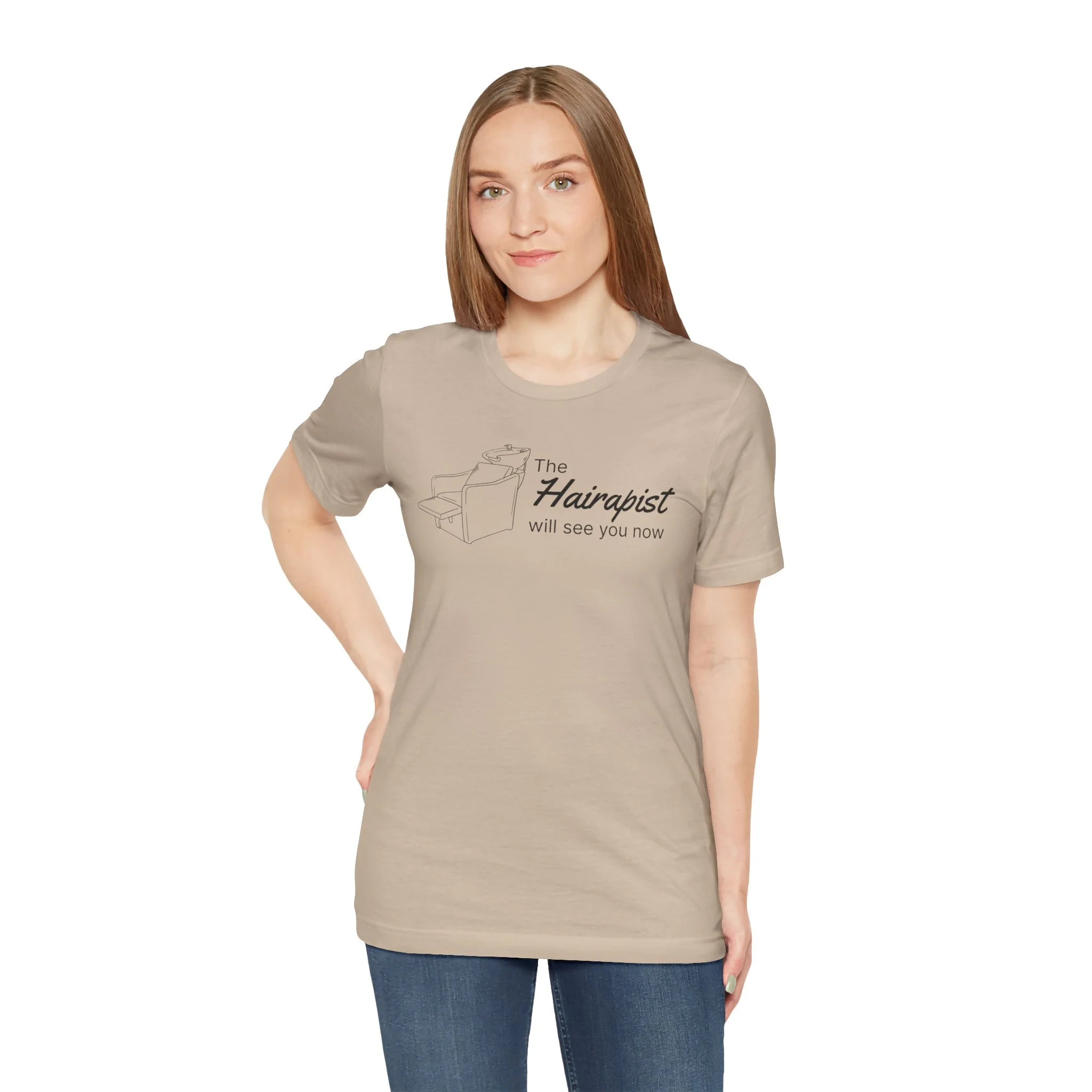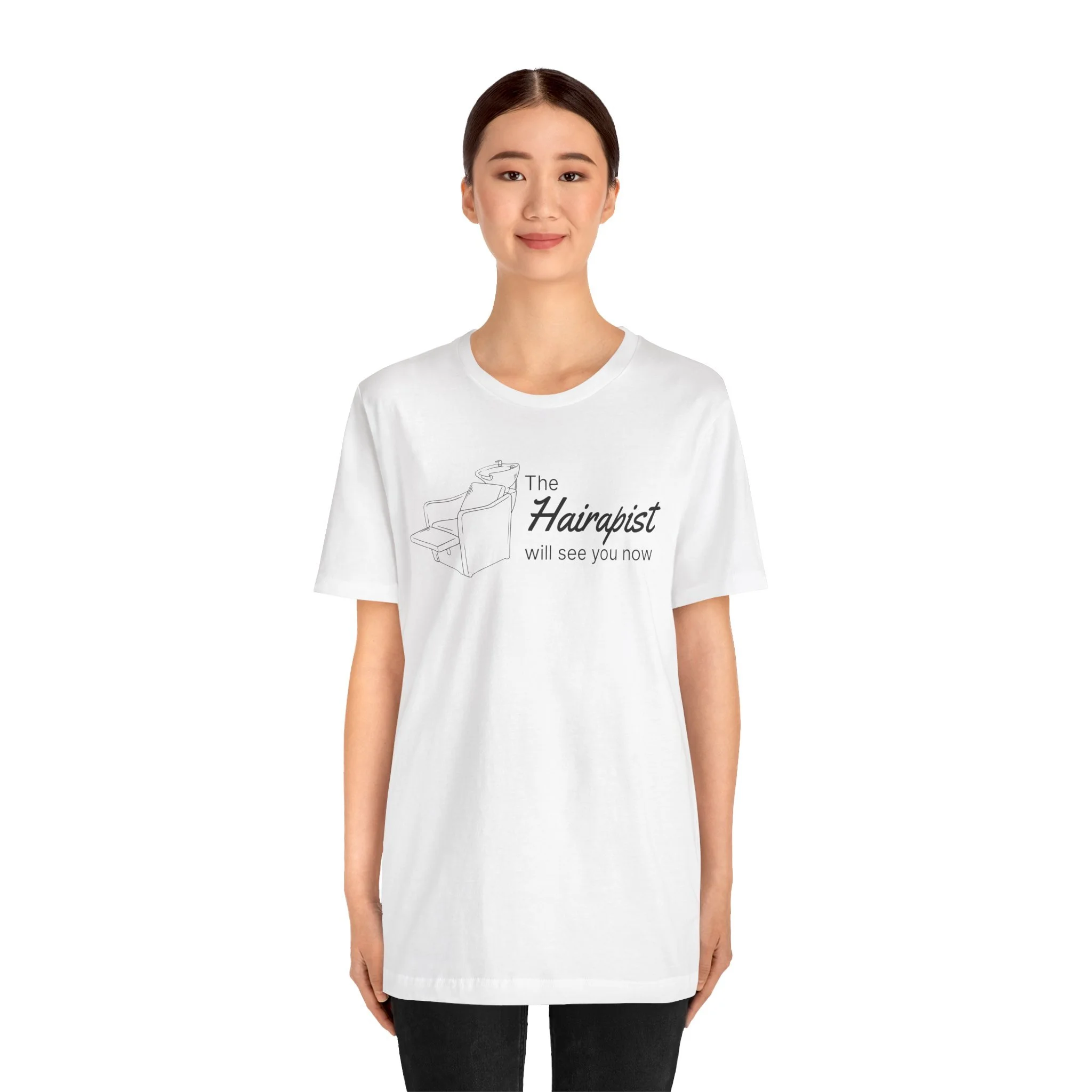 Because the salon chair is basically therapy. A witty tee for stylists everywhere.